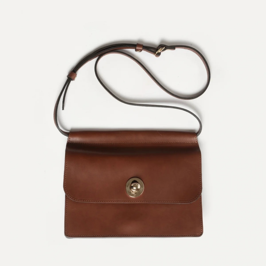 Bleu de Chauffe - Pochette Sacoche Femme - Cuir - Brun Ambré