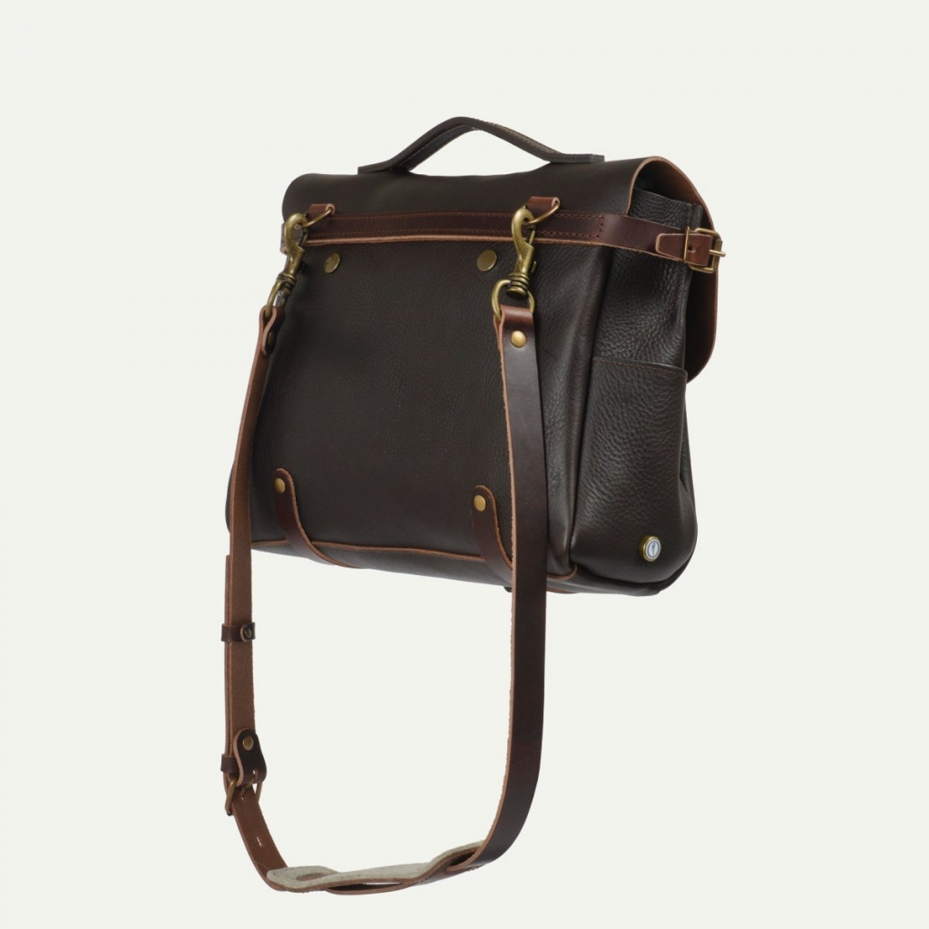 Bleu de Chauffe - Sac Postier Eclair M - Cuir - Marron Brun